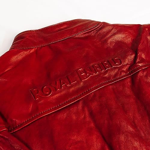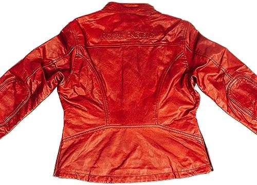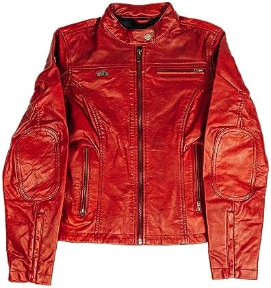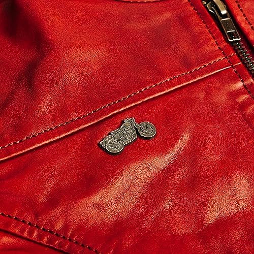 Women's Red Crew Leather Biker Jacket-Premium Retro Racer Motorcycle Jacket for Women with Zippers, Pockets