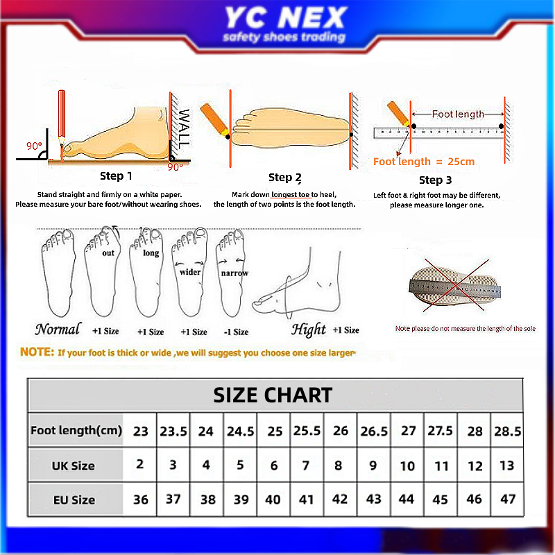 Safety shoe is true to size ( though I upped one size because I have flat and wide feet) light and comfortable to use at a good price. Don’t know how long it will last though.