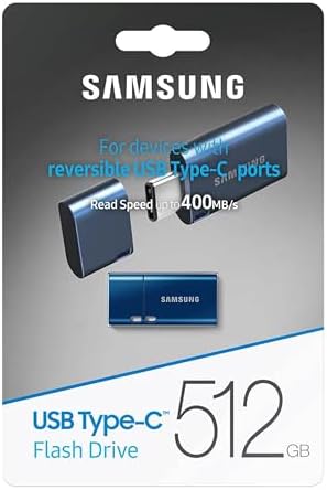 Type-C USB Flash Drive, 512GB, Transfers 4GB Files in 11 Secs w/Up to 400MB/s USB 3.2 Gen 1 Read Speeds, Compatible w/USB 3.0/2.0, Waterproof, 2022, Blue, MUF-512DA/AM