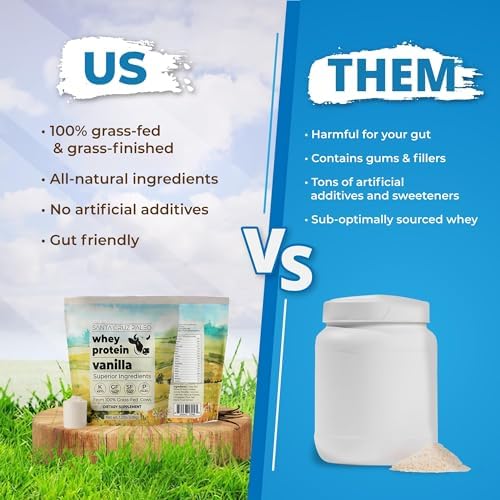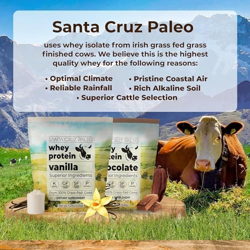 Santa Cruz Paleo Whey Protein Powder, Vanilla Flavor, 20 G Grass Fed Whey Protein Isolate Per Serving, Gluten Free, Paleo & Keto Friendly, No Sugar Added, Protein Shake Mix, 20 Servings, 1.2 lb Bag