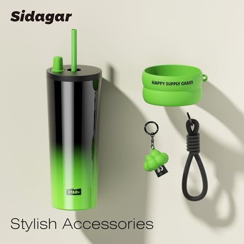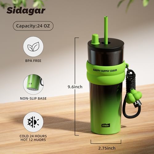 Sponsored Ad - 24 oz Stainless Steel Tumbler with Lid and Straw, Insulated Water Bottle Leak Proof for Hot and Cold, Portable Travel Coffee Mug, Reusable Coffee Cup for Women, Green