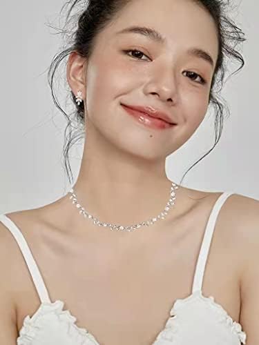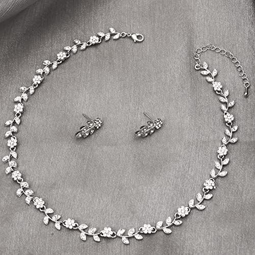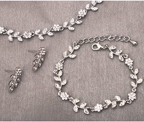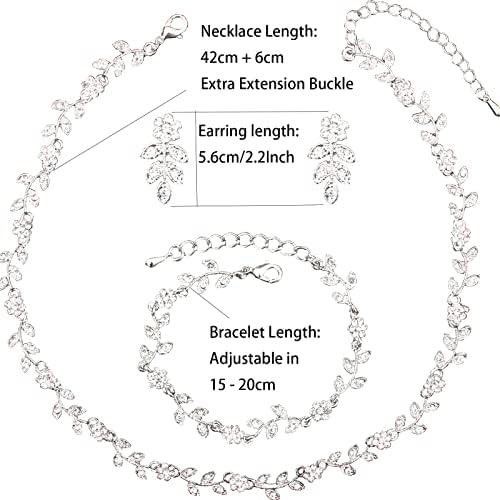 Austrian Crystal Rhinestone Choker Necklace Dangle Earring Link Bracelet Jewelry Set for Brides Bridesmaid Prom Costume Accessories for Women