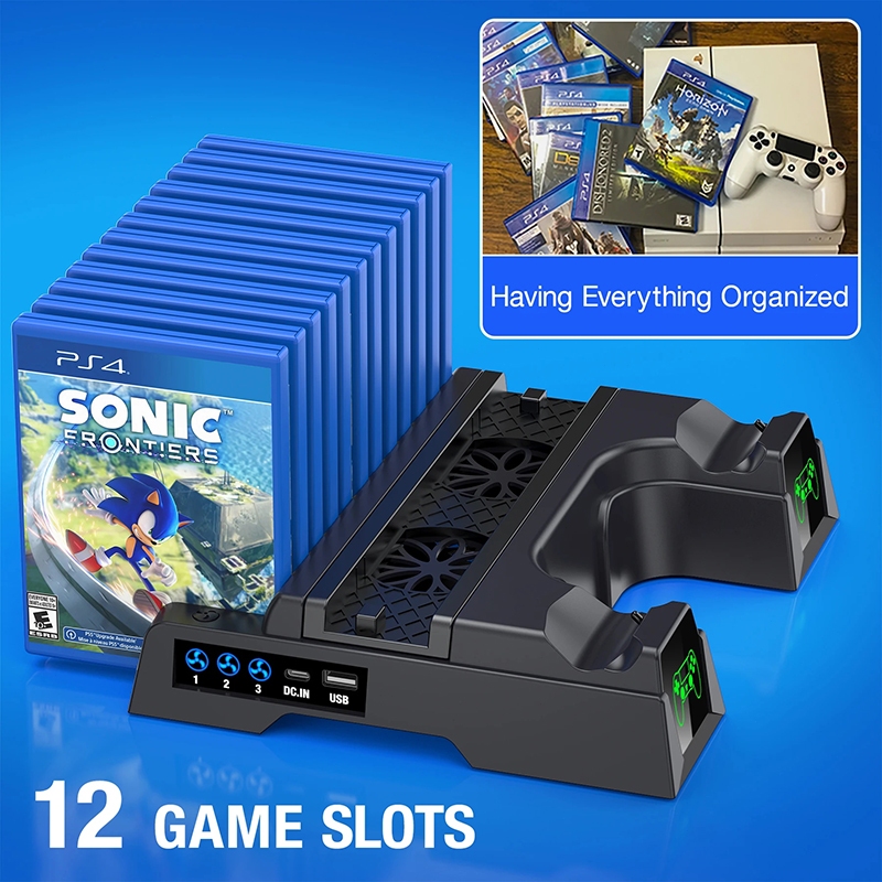 Product Quality:Excellent Best Feature(s):Saves space Value For Money:Yes The PS4 Dual Charger LED Vertical Cooling Stand is a must-have for PS4 owners. It efficiently charges two controllers simultaneously and keeps your console cool with its built-in fan. The LED indicators are convenient, and the vertical design saves space. Perfect for PS4, PS4 Pro, and PS4 Slim models.