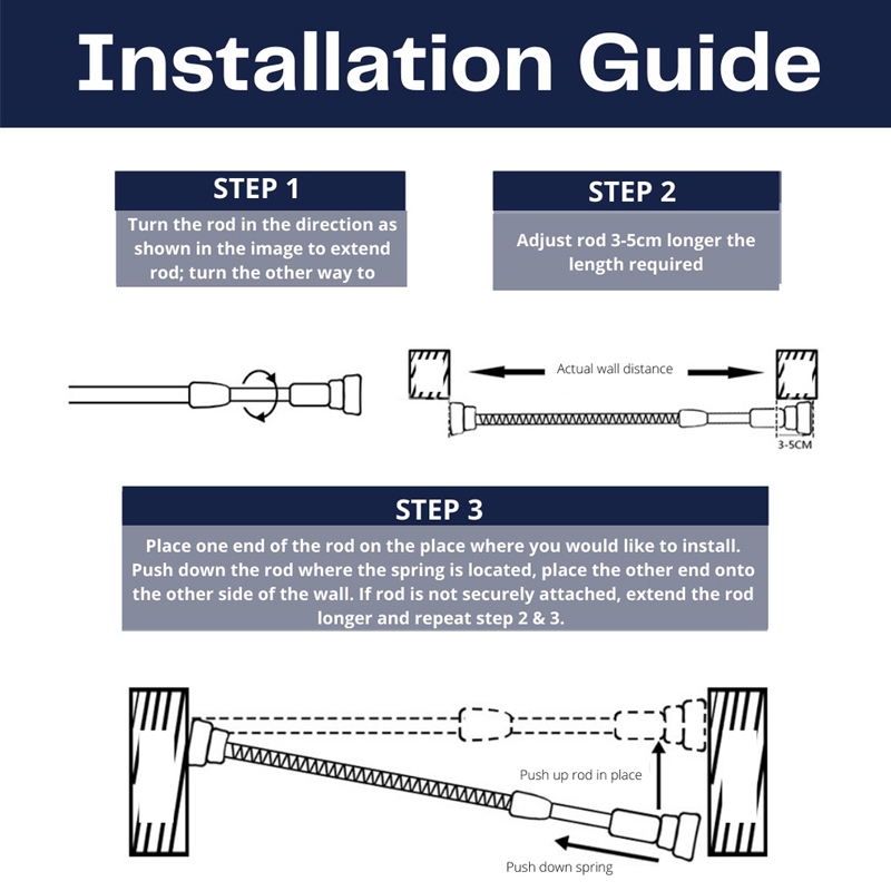 Quality:Good Appearance:Stainless Metal Performance:Good This adjustable extension rod is good. Can stretch between 110-200cm as per the specifications. This is the second time I brought from this seller. If can include free delivery from $15 onward, it’s will be more ideal. Overall experience is good