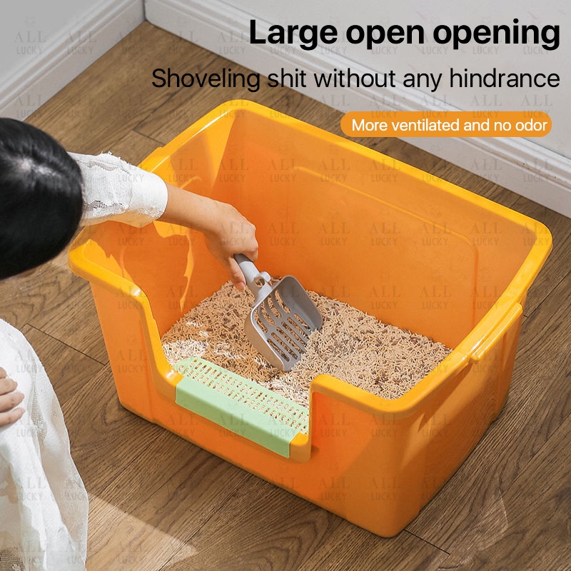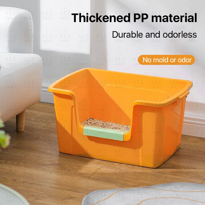 Quality:very good Performance:good Suitability:cat litter box Litter box is bigger than the normal one. Bought this because when my cat sterile, i bought cat best organic litter which is fine. My cat when use litter box very messy so bought a high litter box so that it will be less messy. Thanks to shoppee, shopping os easy and convenient and this shop gives free delivery too. Very happy with this purchase.