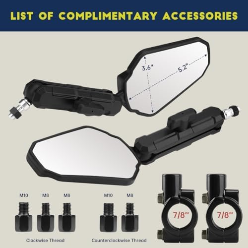 Sponsored Ad - Adventure Bike Mirrors, Motorcycle Mirror Fits RAM B Balls and 7/8"Handlebar M10 M8,Compatible with KTM 1290 Super Adventure,Honda Africa Twin,kawasaki KLR, Yamaha XT,Suzuki DR,BMW GS,A