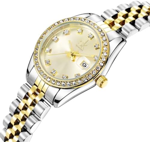 Women's Crystal Accented with Solid Alloy Steel Band Watch Elegant Dress Quartz Calendar Watches for Women