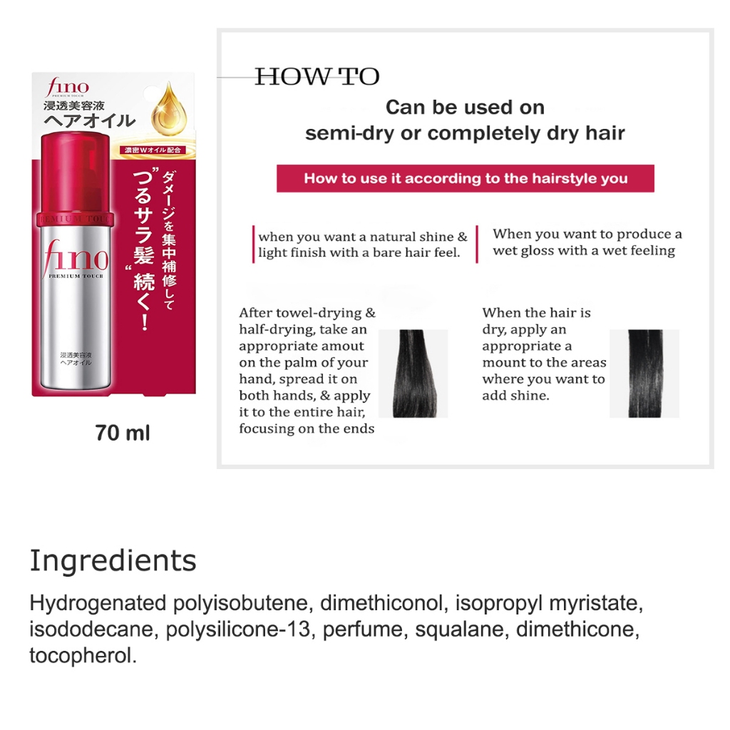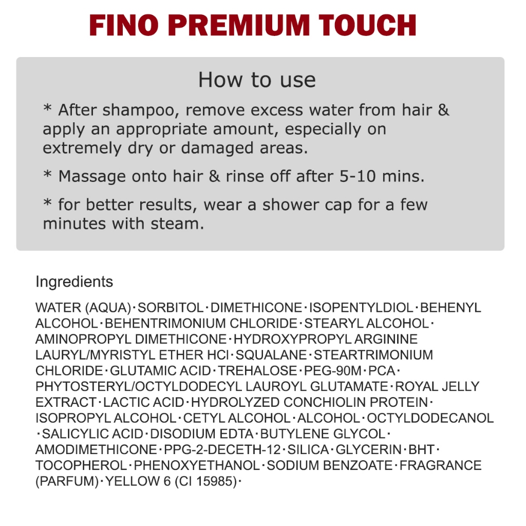 Suitability:for smoother and softer hair Formulation:good Performance:good second time buying because fino hair mask is really very good! smells incredible and makes my hair super soft and smooth after washing. love it!