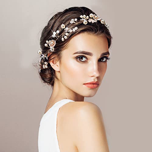 Sightor Flower Girl Headpiece, Wedding Headband for Women Crystal Pearl Hair Accessories for Birthday, Party, First Communion,Wedding Bride Bridesmaids Hair Jewelry