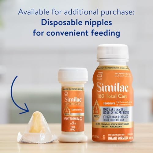 Similac 360 Total Care Sensitive Infant Formula for Fussiness & Gas Due to Lactose Sensitivity, Has 5 HMO Prebiotics, Baby Formula, Ready to Feed, 2-fl-oz Bottle, Pack of 12