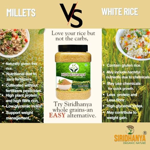 HDC Siridhanya unpolished and organic millets combo pack of 5 USDA Certified Gluten free Kodo, Foxtail, Barnyard, Little and Proso millets, Each millet 2.02lb each packed in Jar total 11lb , 4700g org