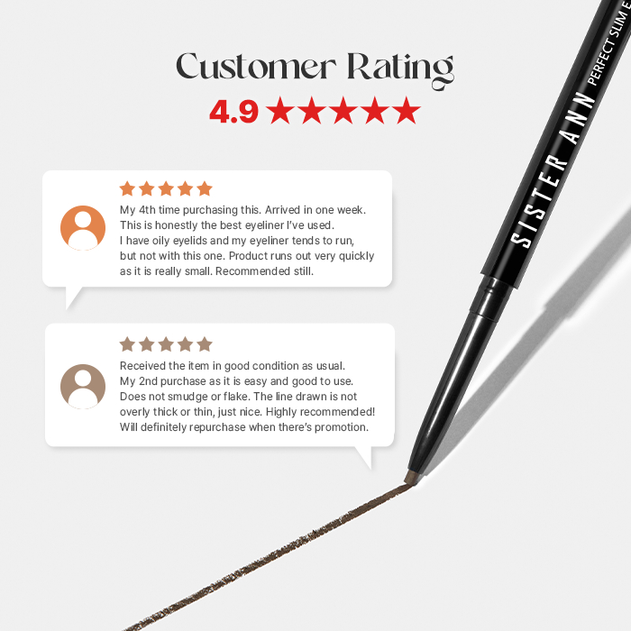 Formulation:Good Performance:Good Suitability:Good Repeat purchase...Have been using Sister Ann eyeliner for a while and really love the slim eye pencil! Am always on a lookout for this item coz the eye pencil uses up pretty fast.