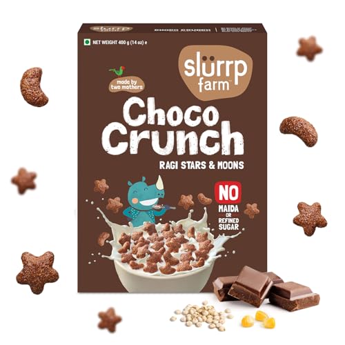 Slurrp Farm Choco Crunch Ragi Cereal | Crunchy Chocolate Breakfast with Stars & Moons | No Maida or Refined Sugar | Made with Millets | Kids Snack & Cereal | 14.11 Oz (400g)