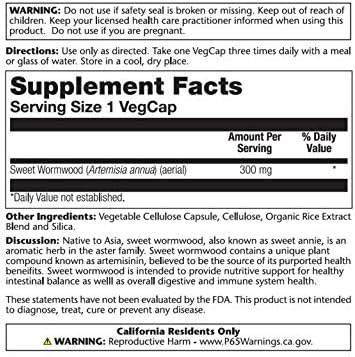SOLARAY Sweet Wormwood Aerial, Veg Cap (Btl-Plastic) 300mg 100ct