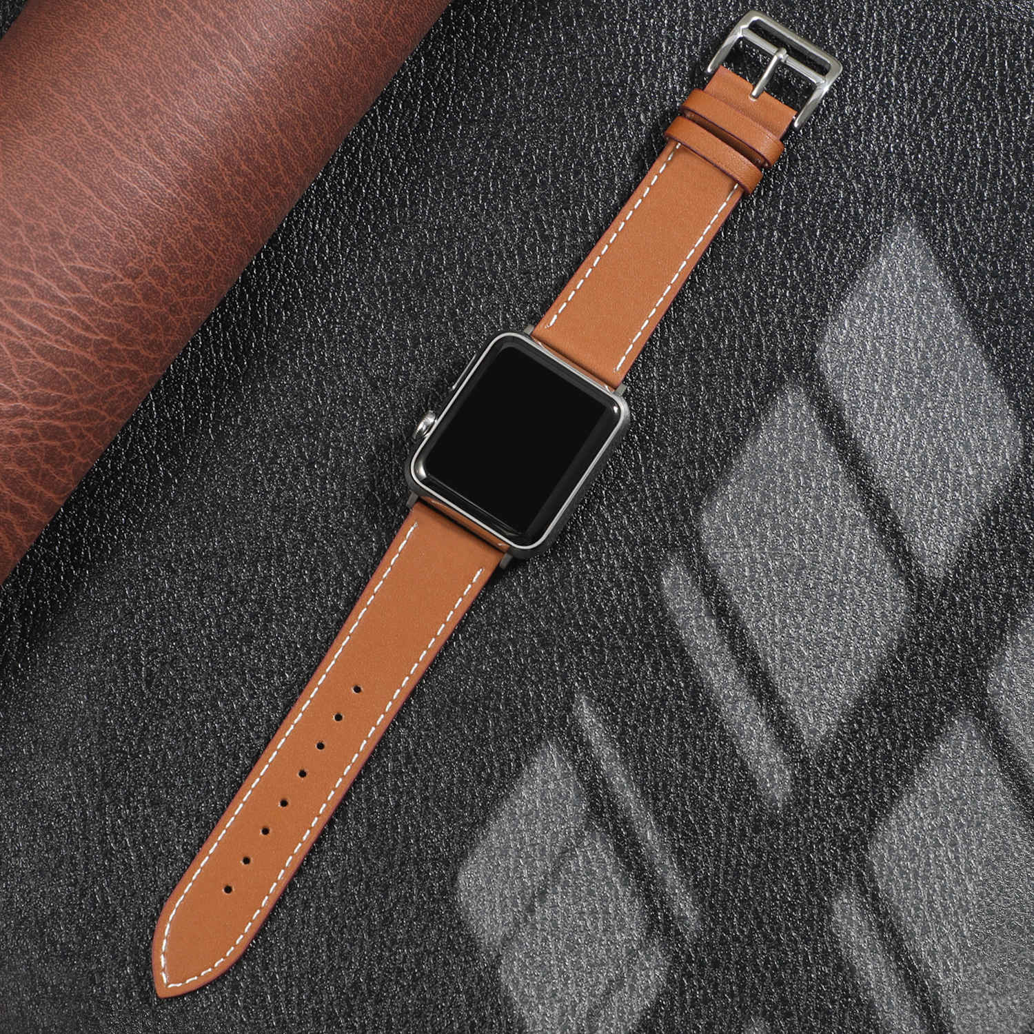 Solid Color Simple Top Leather Replacement Band compatible for Apple Watch 45mm/ 41mm /44mm/ 40mm Series 9/ 8/ 7/ 6/SE/ 5 /4 compatible foriWatch Bracelet Band