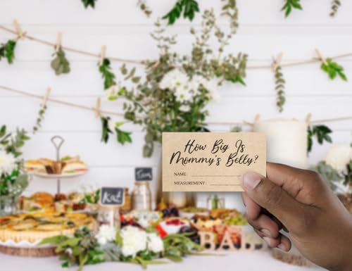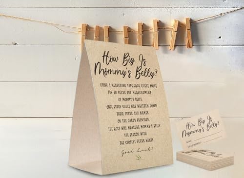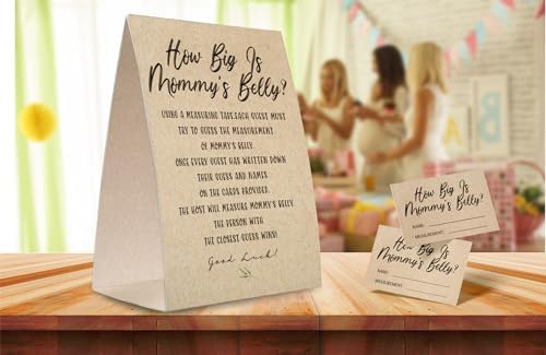 Kraft Paper How Big is Mommy's Belly Sign,Guess Mommy's Belly Size Game Kit (1 Standing Sign + 50 Guessing Cards), Baby Showers Decorations-NPZHB03