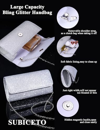 Sponsored Ad - Subiceto 4Pcs Silver Clutch Purse Jewelry Set for Women Evening Rhinestone Purse Crystal Necklace Earrings Bracelets Set Silver Accessories for Women Bride Wedding Jewelry