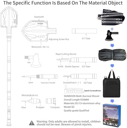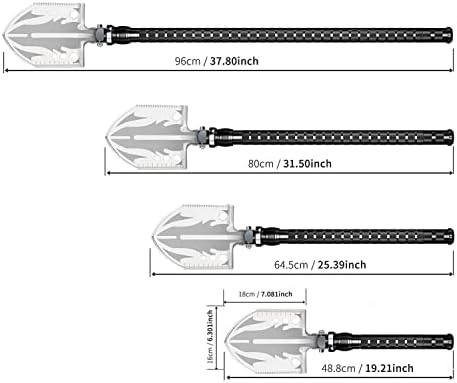 Survival Shovel Survival Axe, Camping Folding Shovels Hatchet with 19.2-37.8inch Lengthened Handle Enlarged Shovelhead High Carbon Steel with Storage Pouch for Camping Cycling Hiking