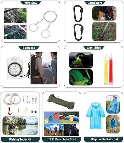 Survival Kit, 262Pcs Survival Gear and Supplies with First Aid Kit Pouch and Crossbody Bag, Emergency Kit with Tent, Camping Axe Hammer, Survival Shovel w/Pick, Bug Out Bag Gifts for Men Women
