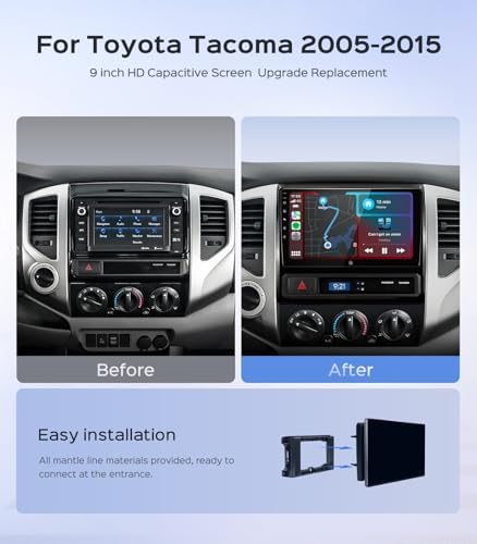 Car Radio Stereo for Toyota Tacoma 2005-2015, 9" Touch Screen Head Unit with Android 13/CarPlay/Android Auto/2+64G /GPS Navigation/Bluetooth/FM/RDS Radio/HD Backup Camera