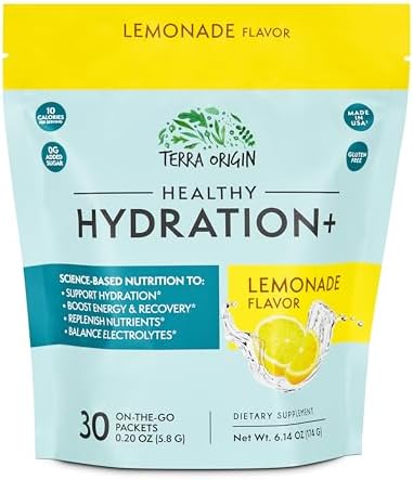 Sponsored Ad - TERRA ORIGIN Healthy Hydration+ Electrolyte Powder Packets | Sugar Free, Gluten Free Drink Mix | Lemonade | 30 Servings (1-Pack)