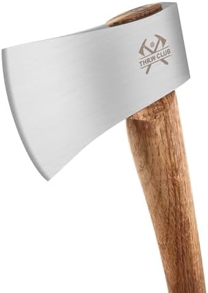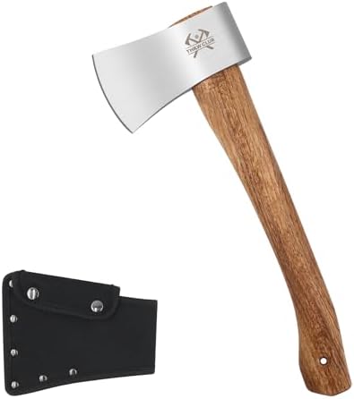 Camping Hatchet, 14.4" Survival Throwing Axe with Sheath, Survival Hatchet with Ergonomic Wood Handle for Camping, Chopping and Hiking