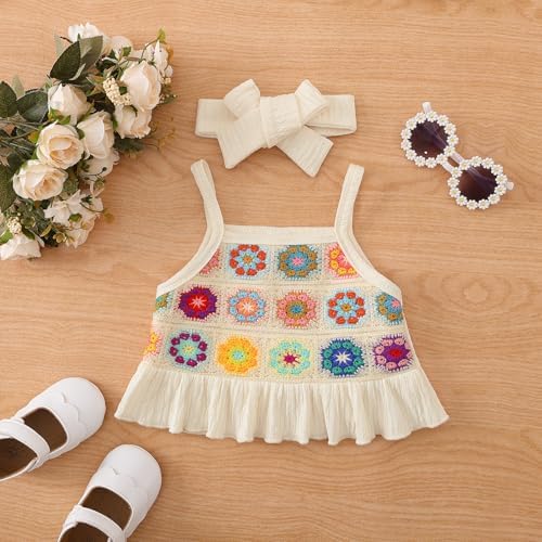 Sponsored Ad - Toddler Baby Girl Summer Clothes Outfits Crocheted Ruffle Camisole Pants Kids Clothing Set