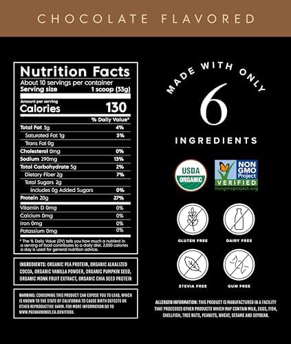 Truvani Vegan Pea Protein Powder | Chocolate | 20g Organic Plant Based Protein | 10 Servings | Keto | Gluten & Dairy Free | Low Carb | No Added Sugar