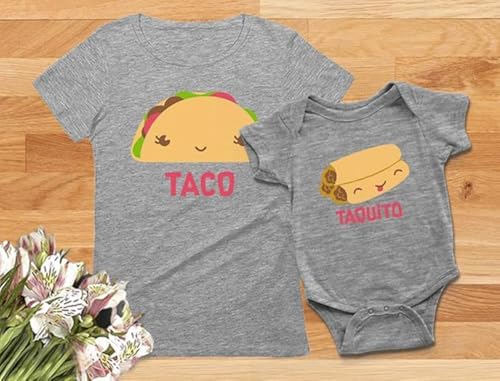 Tstars Taco and Taquito Mommy and Me Outfits Funny Mom and Baby Gift Idea for First Mother's Day or Baby Shower