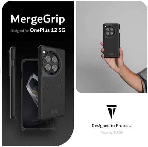 MergeGrip Magsafe Compatible Phone Case for OnePlus 12 5G 2024 - Military Grade, Drop Tested, Dual Layer, Shockproof, Anti-Slip, Heavy Duty & Protector Cover Protective Phone Case - Matte Black