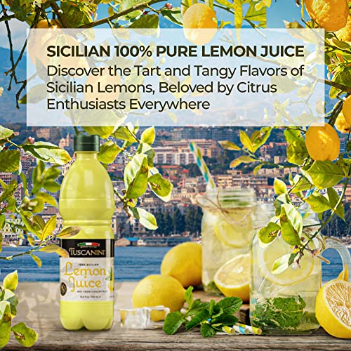 Tuscanini 100% Sicilian Lemon Juice, Not from Concentrate,16.9oz (2 Pack) No Water Added | Convenient Size - Fits Nicely in Refrigerator | Product of Italy | Certified Kosher (Including Passover)
