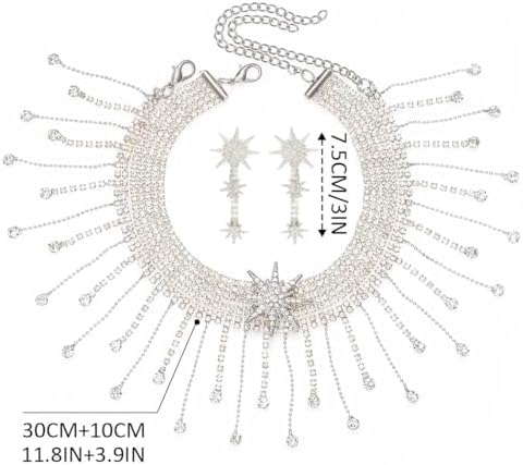 Unicra Rhinestone Choker Necklace Earrings Set Silver Bridal Wedding Jewelry Set Star Crystal Necklaces for Women and Brides