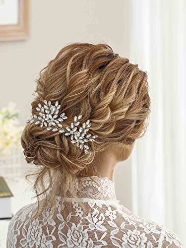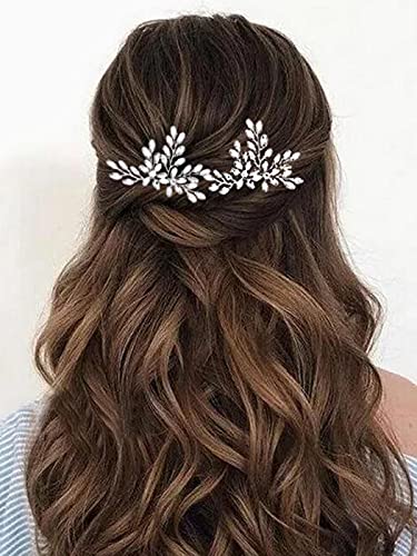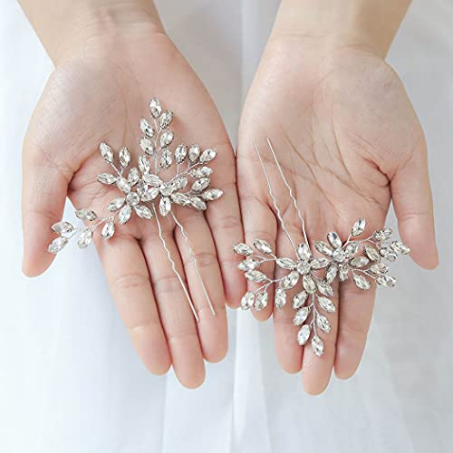 Unicra Rhinestone Bride Wedding Hair Pins Bridal Hair Clips Crystal Hair Piece Decorative Bridesmaids Hair Accessories for Women and Girls Pack of 2 (A-Silver)