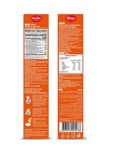 Uvelka Millet Boil-in-Bag Psheno - 5x80g (14.1 oz), From Russia, Kosher, Pack of 1