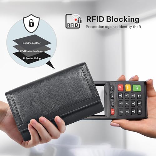 Sponsored Ad - Women's Leather Wallet - RFID Blocking Wallet - Ladies Clutch Hand Purse With Card Holder Slots (Black Nappa LW06)