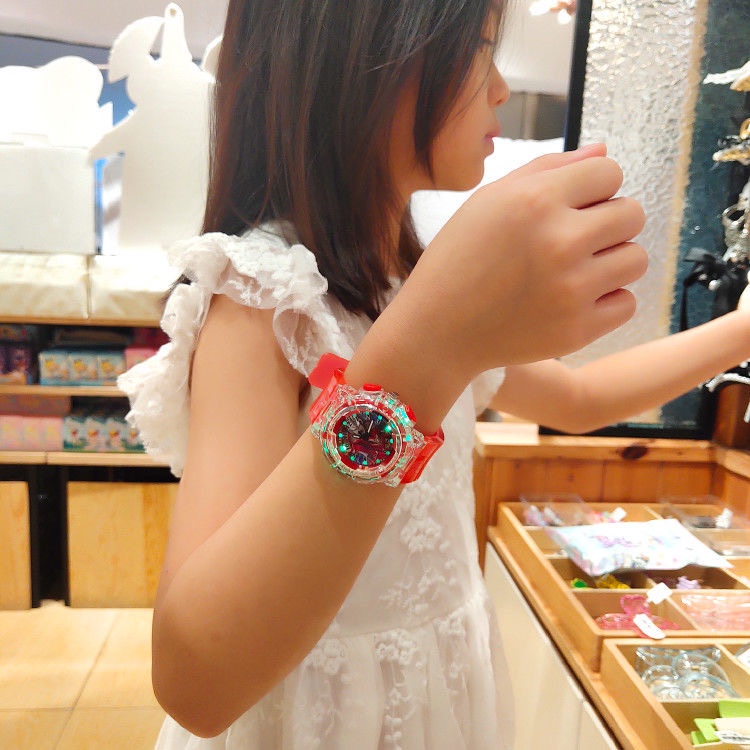 True to the description: nice watch Color: true to the order Material: ok The price is reasonable, my son loves the beautiful colors with bright lights