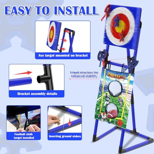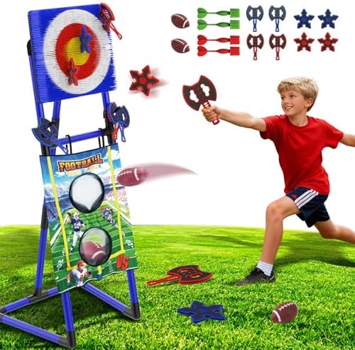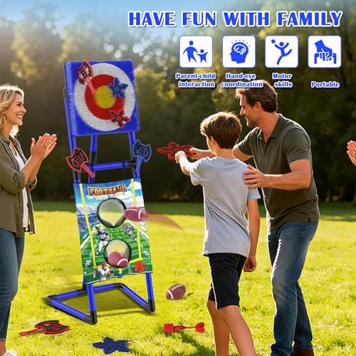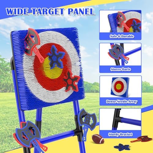 VATOS 2-in-1 Axe & Football Throwing Game Set, Bristle Axe Toss Target with 16 pcs Safe Darts, Portable Outdoor & Indoor Backyard Games for Teens and Adults, Lawn Carnival, Camping Party Toy Gift