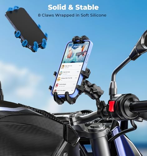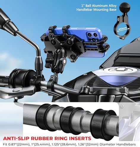 Sponsored Ad - Motorcycle Phone Mount with Vibration Dampener, Anti-Shake Bike Phone Holder with Aluminum Alloy Handlebar Clamp, One-Handed Operation Motorcycle Cellphone Mount Fit for 5.4"-7.2" Smart