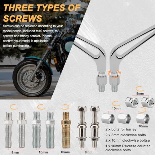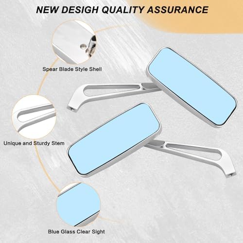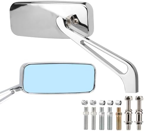 Sponsored Ad - Motorcycle Rectangle Rearview Mirror 8mm 10mm Blue Lens Side Mirrors 360 Degree Chrome Universal Replacement for Harley Softail Touring Sportster Cruiser Street Bike Scooter Chopper