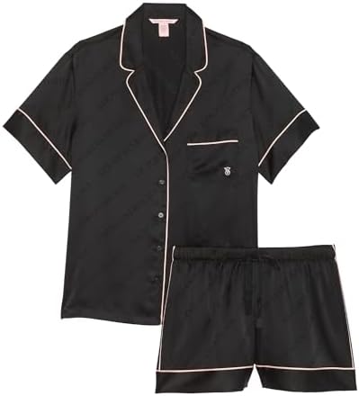 Satin Pajama Set, Short Sleeve Button Down Shirt & Shorts, Sleepwear for Women (XS-XXL)