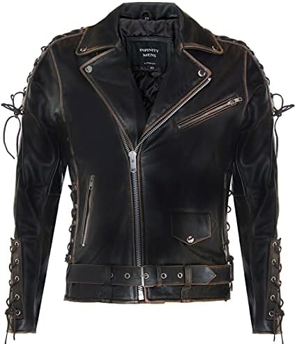Mens Vintage Black Brando “Live to Ride” Embossed Eagle Leather Biker Motorcycle Jacket