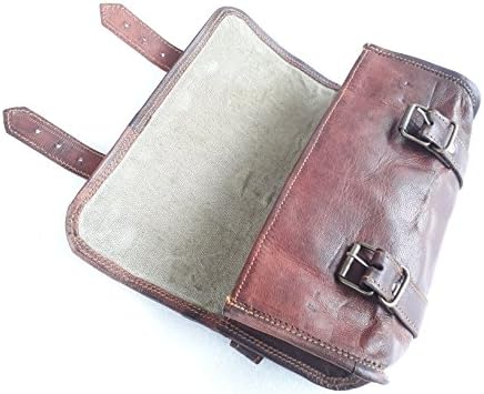 Vintage Motorcycle Genuine Goat Leather 2 Strap Buckle Closure Tool Brown Bag Quick Release Clasp REINFORCED for handlebars,Forks, Sissy Bar - 10"