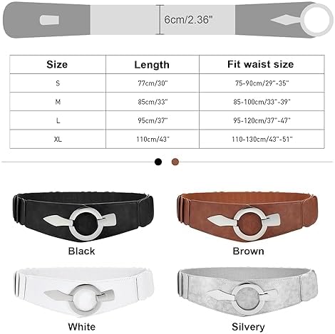 VONMELLI Wide Elastic Waist Belt Women Hip Belt Vintage Stretch Belt with Silver Ring Clasp