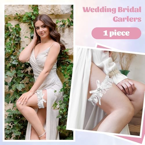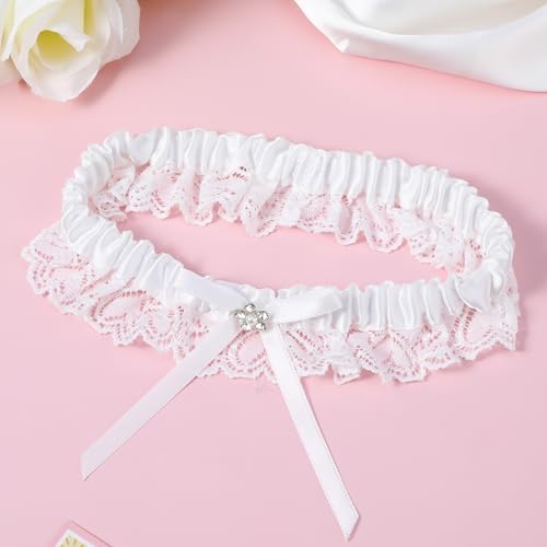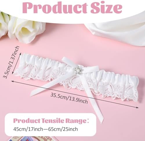 Wedding Garters for Bride, Elegant Satin Bride Garters with Rhinestone Lace Bridal Accessories for Women and Girls