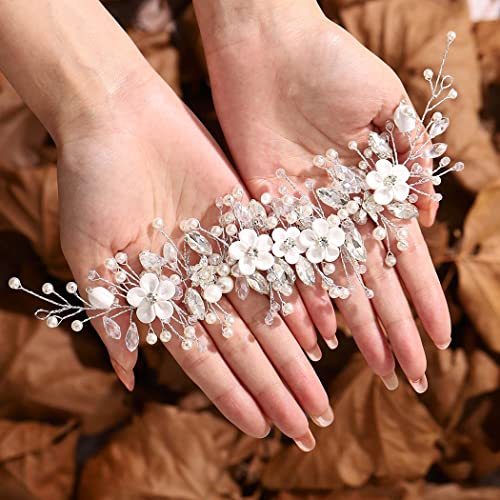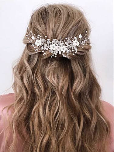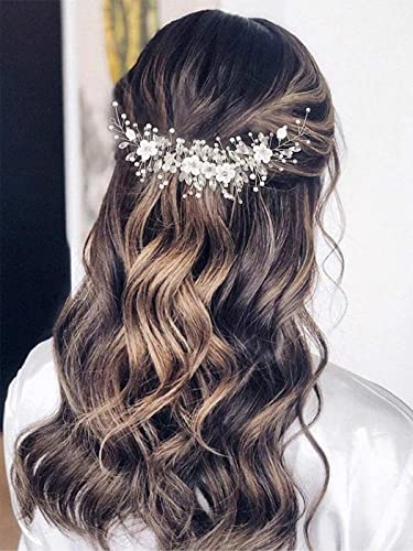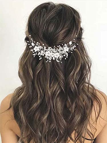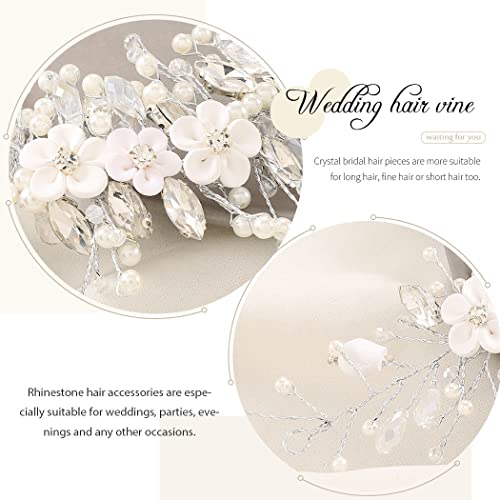 GORAIS Flower Bride Wedding Hair Vine Silver Rhinestone Bridal Headpiece Pearl Hair Piece Crystal Hair Accessories for Women and Girls