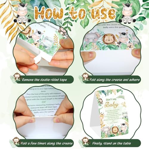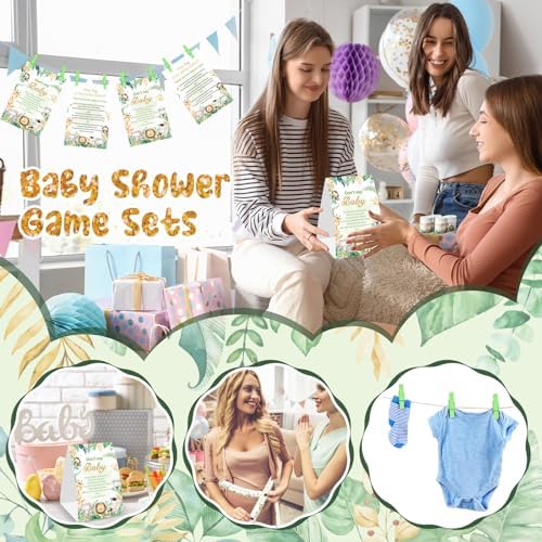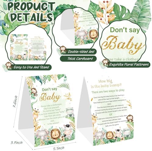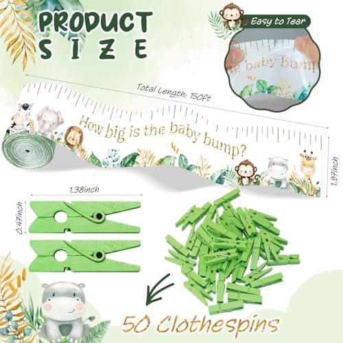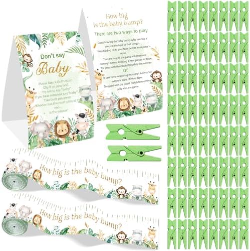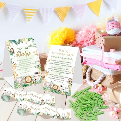 Safari Baby Shower Games Sign How Big is The Baby Bump and Don't Say Baby, 2 Tummy Measure Rolls and 50 Mini Clothespins, Safari Decorations Party Favors Supplies