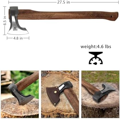 Splitting Axe, 27.5-inch Chopping Axe with Leather Sheath, Camping Hatchet 1065 High Manganese Steel and Hickory Handle