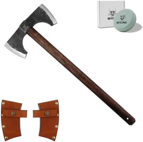 Splitting Axe, 23.6 Inch Double Bit Axe, Beech Handle with Leather Sheath, for Chopping, Splitting Wood or Axe Throwing