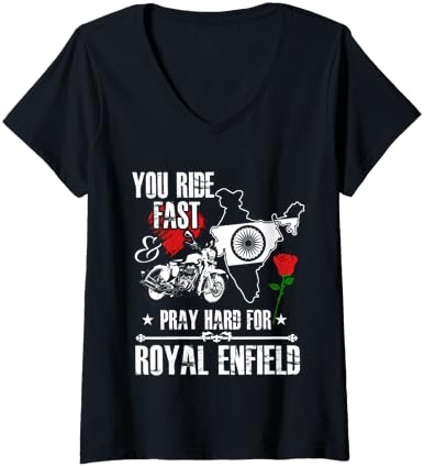 Womens You Ride Fast & Pray Hard For Royal Enfield T shirt V-Neck T-Shirt