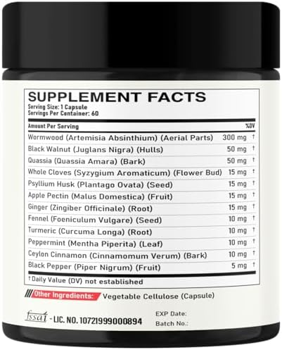 12in1 Wormwood Capsules Black Walnut Cloves, Ginger, Turmeric Curcumin & Black Pepper - Immune System - 60 Capsules